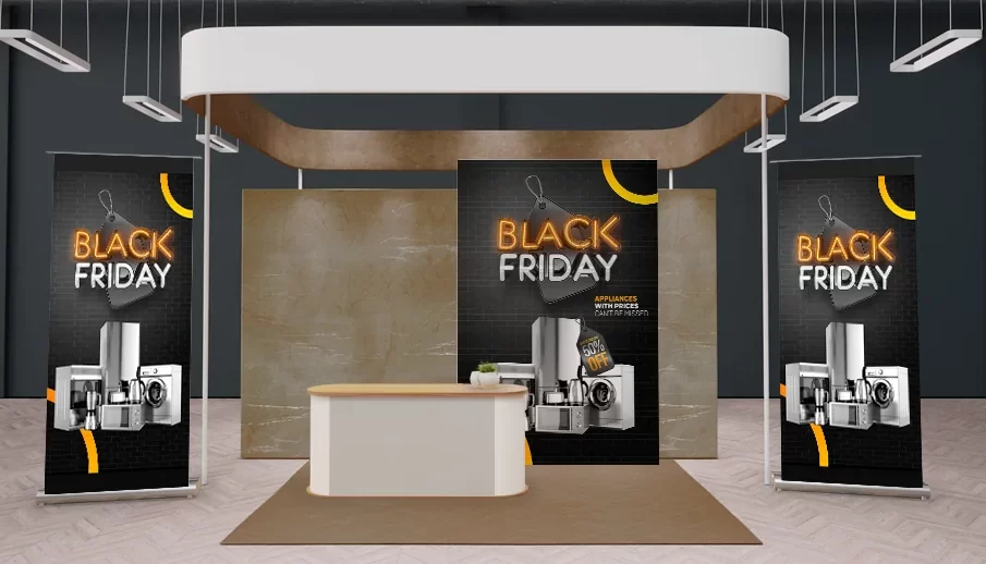 Navigation – hanging banners carefully placed above your exhibition stand makes it easier for people to find your stand. This makes it a crucial navigation and wayfinding solution in a packed space full of competitors. You can include directional cues, text, and other visual items to help people find your stand.